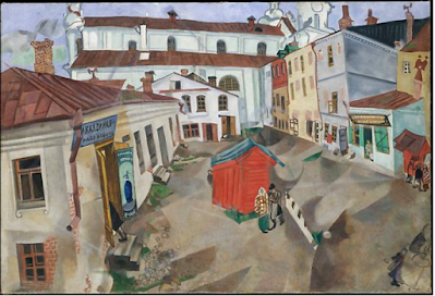 Realiza en estos años muchas obras que evocan a Rusia, consolidándose en su vocabulario iconográfico temas y personajes del Vitebsk natal, que son presentados como si se tratara de un cuento donde lo maravilloso y la magia dominan la escena. También París pasa a formar parte de sus obras.